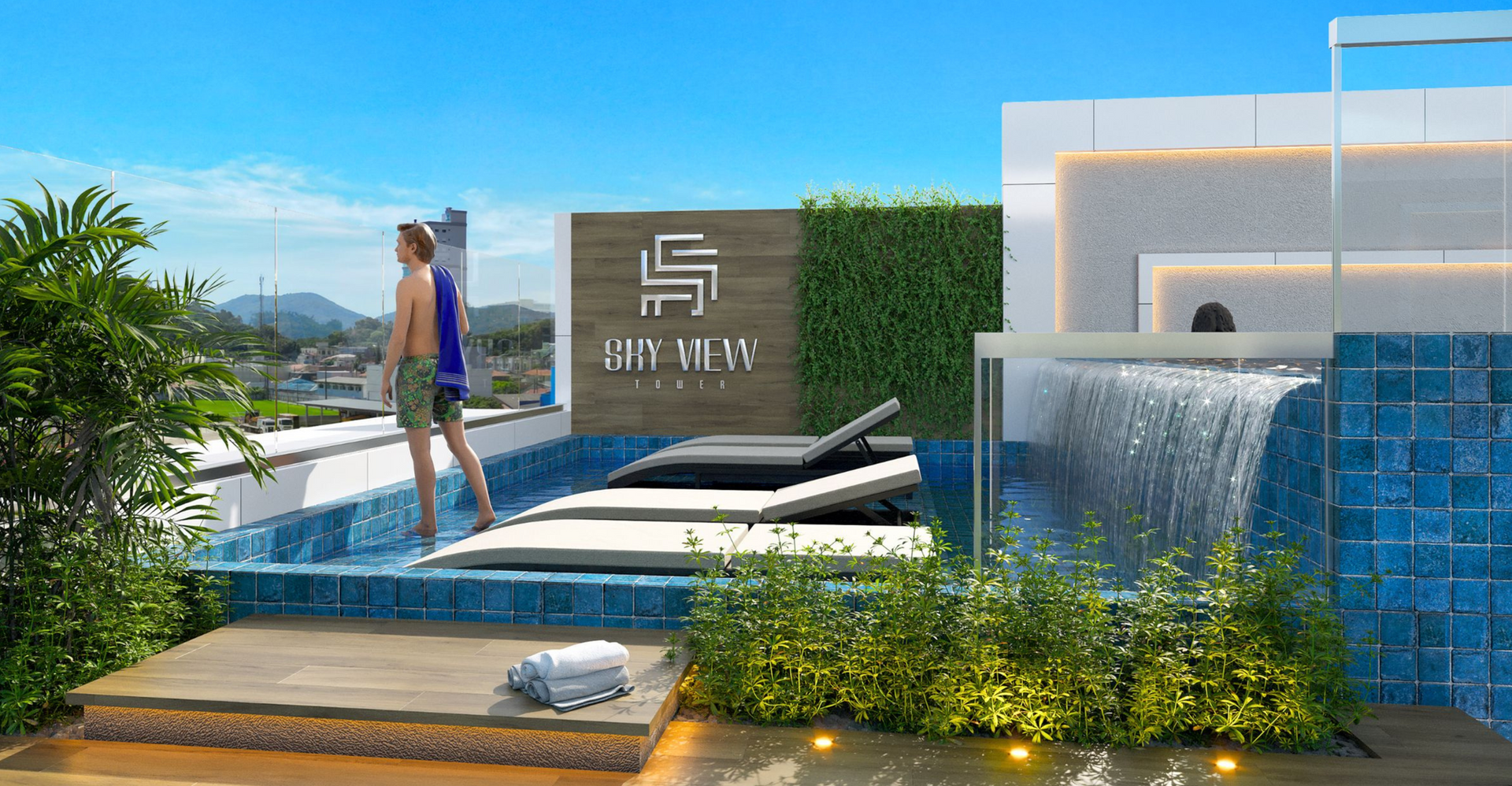 Sky View Tower oferece uma experiência de vista única, 31 paviementos com dois mirantes a mais de 106 metros de altura, proporcionando uma perspectiva de 270° no Rooftop, posicionados para a cidade de Porto Belo - SC e para a praia do Caixa D’Aço.